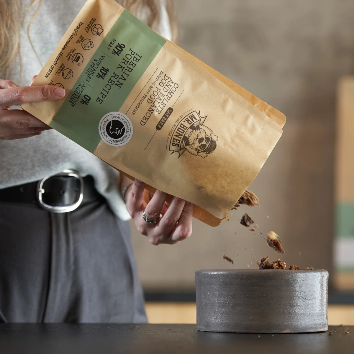 Cuando no te ha dado tiempo a descongelar su CRU, cuando sales de viaje o simplemente buscas una opción cómoda y natural para alimentar bien a tu perro, esta comida deshidratada de cerdo es una solución fiable y nutritiva.