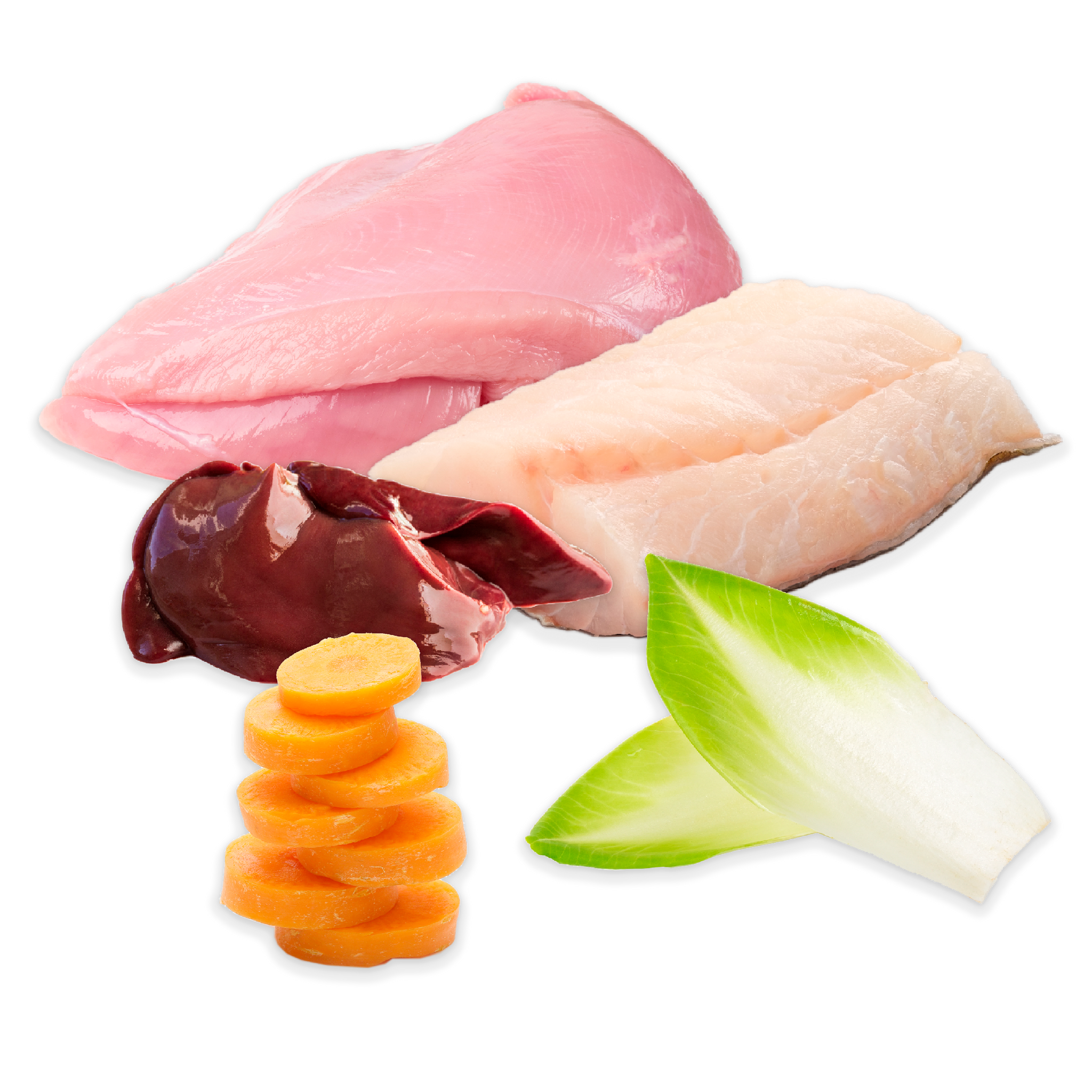Utilizamos ingredientes 100 % naturales, seleccionados para respetar la fisiología del perro.