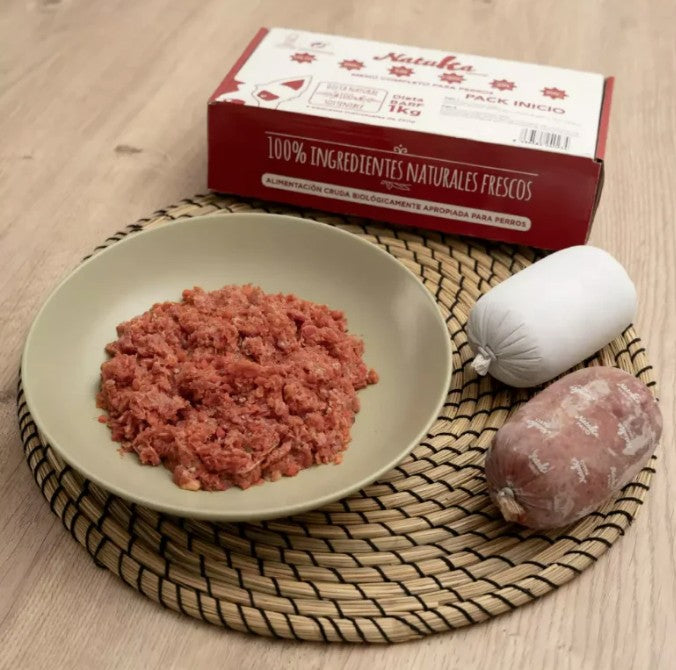 Un pack pensado para iniciar la alimentación BARF de forma progresiva y respetuosa, elaborado sin aditivos ni conservantes, y sin necesidad de añadir suplementos durante el proceso de transición.