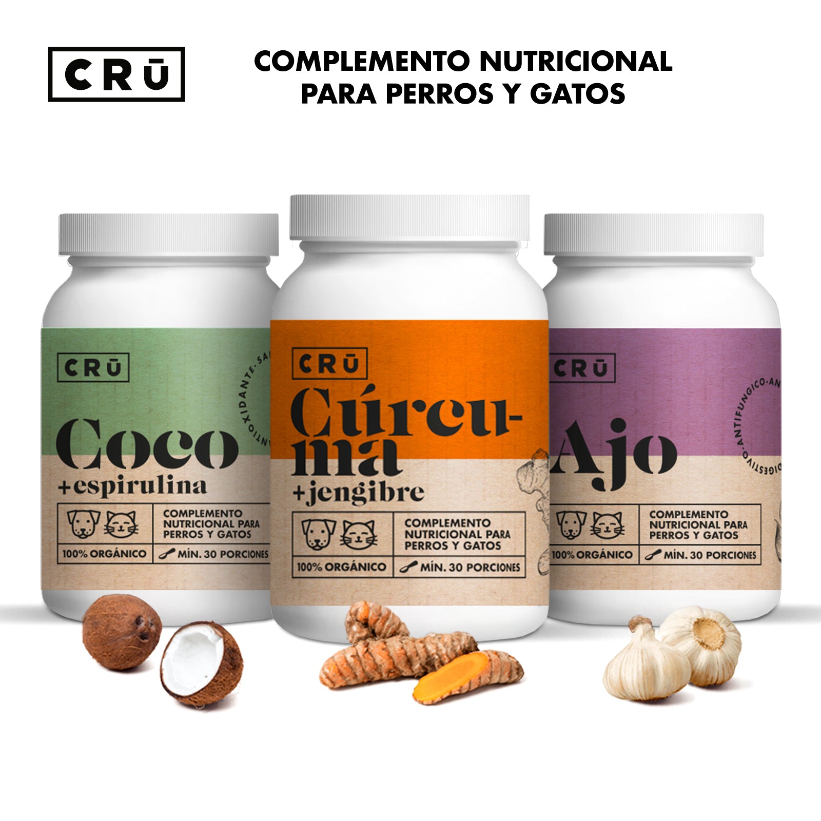 Pack de 3 Suplementos Nutricionales - Golden Paste, Coco y Espirulina, Ajo